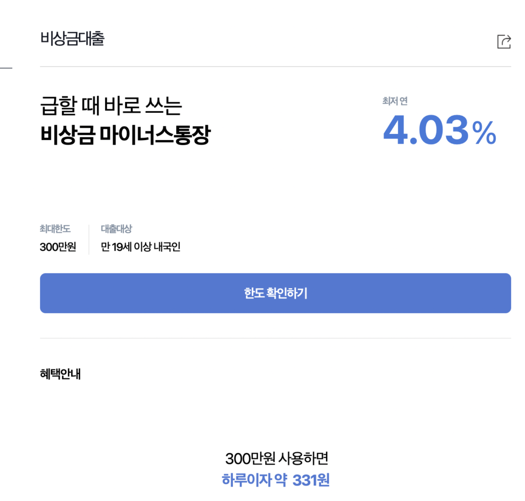 대출한도 : 최소 50만원 ~ 최대 300만원